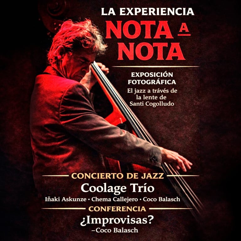 El evento La experiencia nota a nota combina tres propuestas para explorar el arte y su relación con la vida cotidiana: una conferencia impartida por Coco Balasch, un concierto de jazz a cargo de CoolAge Trío y una exposición fotográfica acompañada de una charla del fotoperiodista Santi Cogolludo.